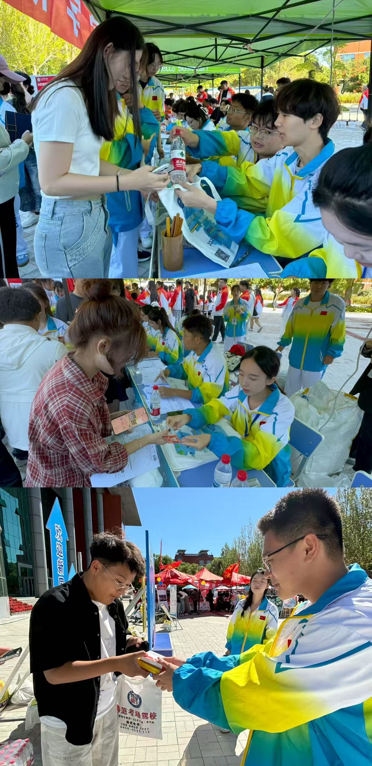 天微亮,志愿者已就位。迎新帐篷下,桌椅摆放整齐,物资筹备妥当,报到流程指引清晰明了。党总支书记、经理高扬,副经理乔兴,副经理沙元霞,员工工作办公室主任夏丽娜,团委副书记张鹭以及公司各位老师都来到现场,与志愿者一同迎接新生,亲切询问报到情况,让新生和家长倍感温暖。