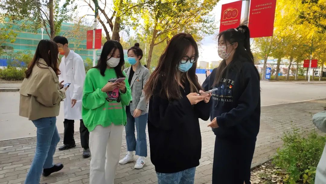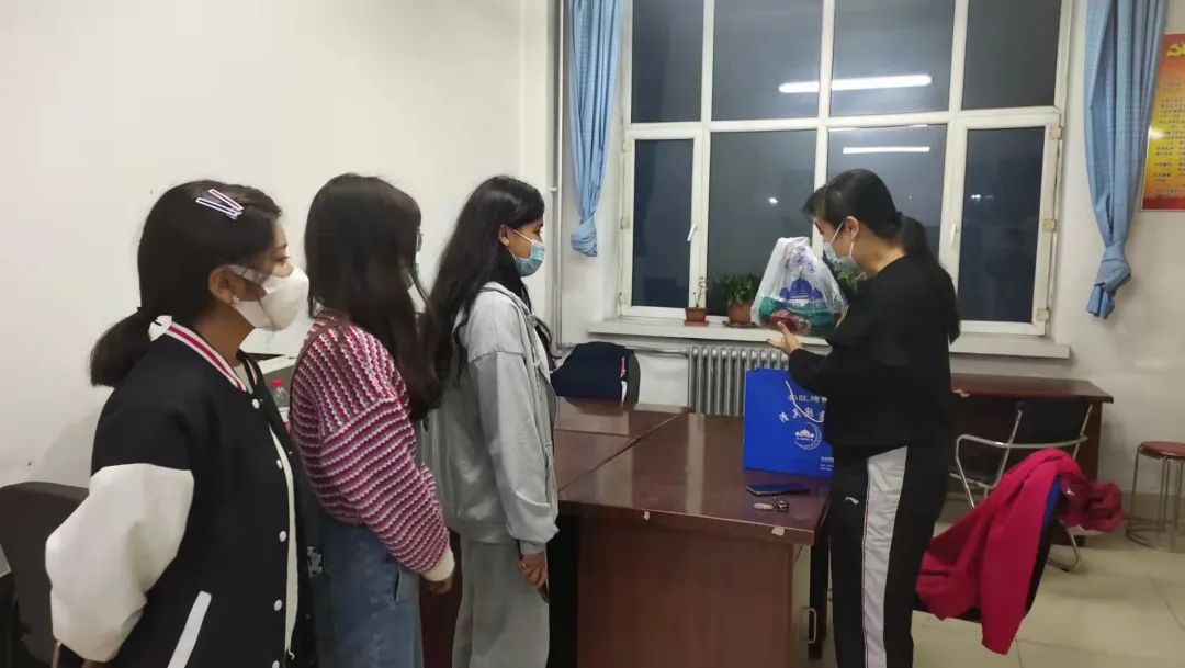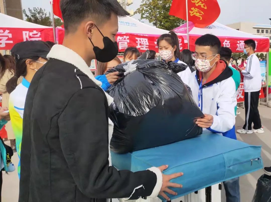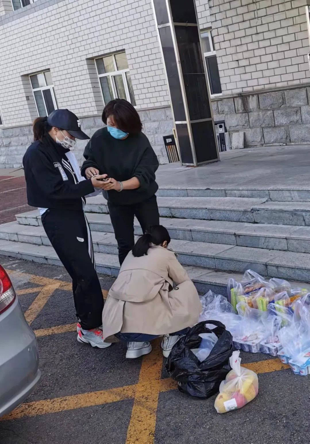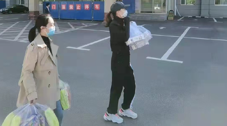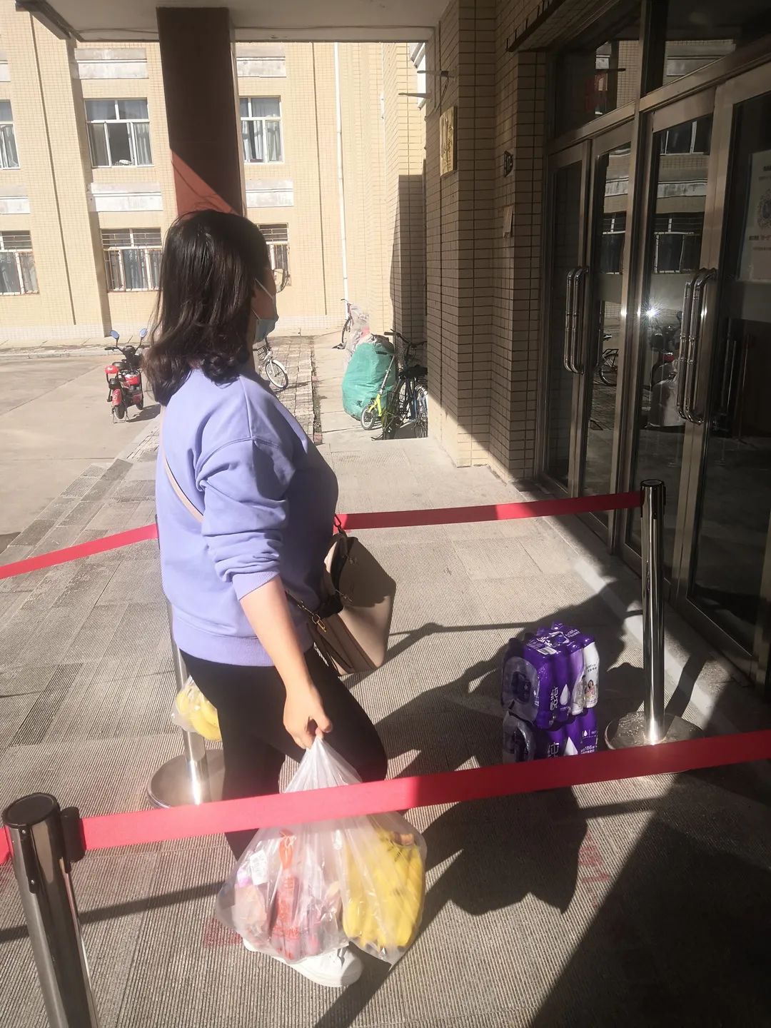 裹扛上肩膀;疫情下,分餐、送餐,楼上楼下送温暖;校园里,志愿服务做在前,提醒同学取包裹,有序排队,间隔一米远……