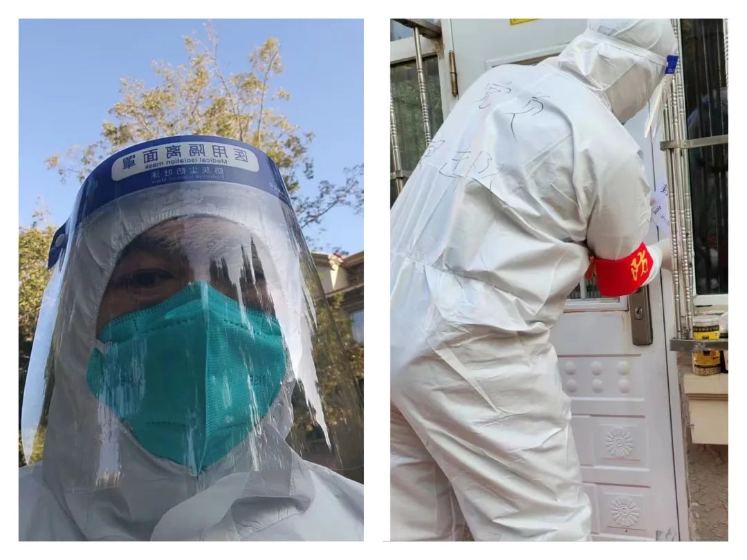 为协助社区做好居民核酸检测工作,在社区工作人员的安排下,刘老师穿上防护服承担起巡逻小组的组织和协调的工作,除完成巡逻劝导、在时间允许的情况下积极协助维护核酸检测。