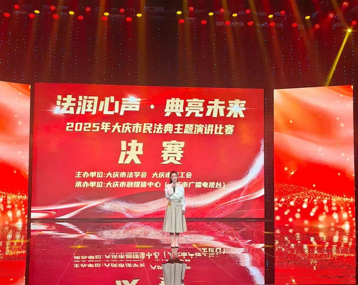 2025年5月22日,“法润心声·典亮未来”民法典主题演讲比赛决赛在大庆市成功举行。本次活动由大庆市法学会、大庆市总工会联合主办,大庆市融媒体中心(大庆广播电视台)承办。公司团委副书记张鹭在本次比赛中荣获一等奖。